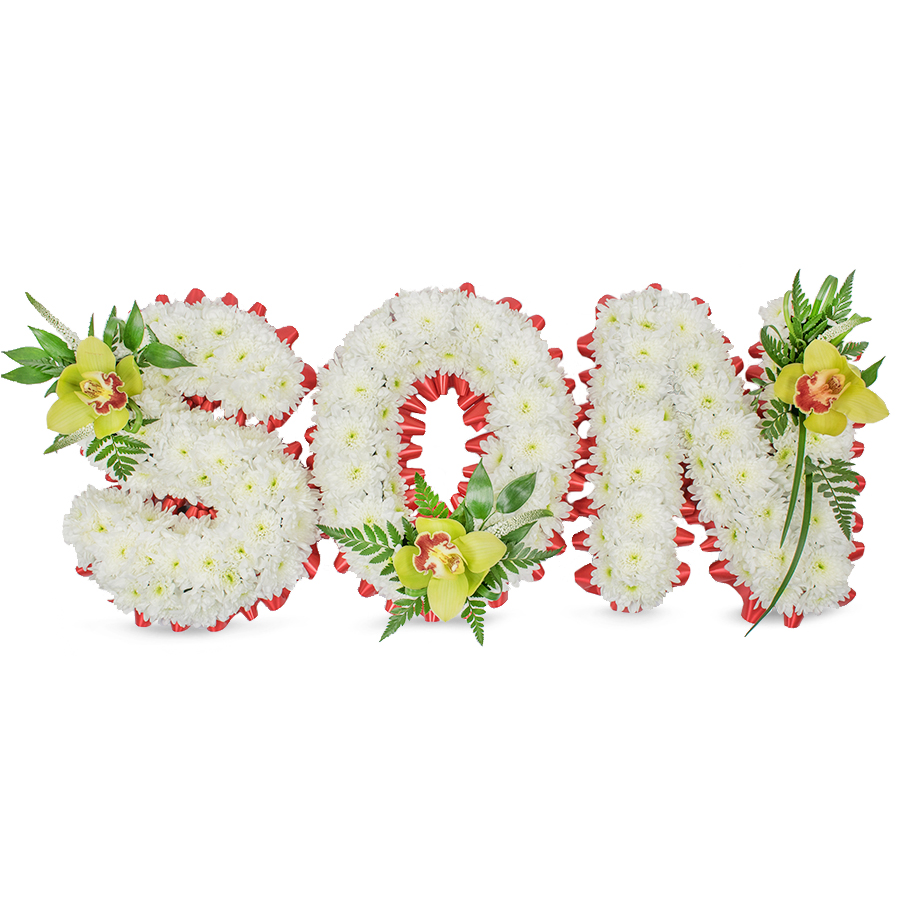 The Heavenly Son Tribute from Florist Hither Green is a graceful floral arrangement designed to honour a much-loved son with purity and elegance. Featuring delicate white chrysanthemums, magnificent orchids and white veronica, this tribute symbolises heartfelt remembrance, warm thoughts and sincere sympathy. Accented with lush ruscus, leather leaves and bear grass, the spray has a soft, flowing shape that creates a peaceful, heavenly feel at any funeral or memorial service.